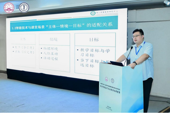 刘冲副教授围绕《智能技术介入课堂场景再造的适配难题及其修复》主题,认为智能技术介入的课堂场景再造存在“主体”适配错位、“情境”适配断裂、“目标”适配偏移等难题,导致主体角色异化、学习需求脱节、目标定位失衡等后果。修复智能技术与课堂“主体—情境—目标”的适配关系,需从重构课堂主体角色定位、构建学习中心课堂生态、围绕目标合理运用技术等方面努力,实现智能技术对课堂场景再造的赋能提质。