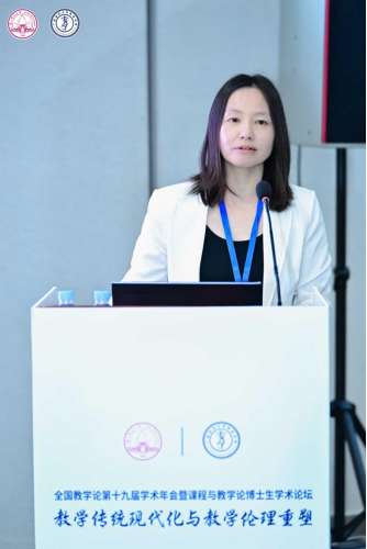 王芳芳副教授以《互构共生:课程史视野下分科教学与跨学科教学的关系阐释》为题做了学术报告。以课程史为内线,学科发展史为外线,内外线相互交织的方式,探索分科教学与跨学科教学的关系问题,提出分科教学与跨学科教学在发展学生核心素养方面同等重要,二者是相互补充、相互依赖、互构共生的关系。实践中需要在理念层面树立整体教学观,纵向层面推进分科教学的融合式创新,横向层面提升跨学科教学的知识含量和深度。