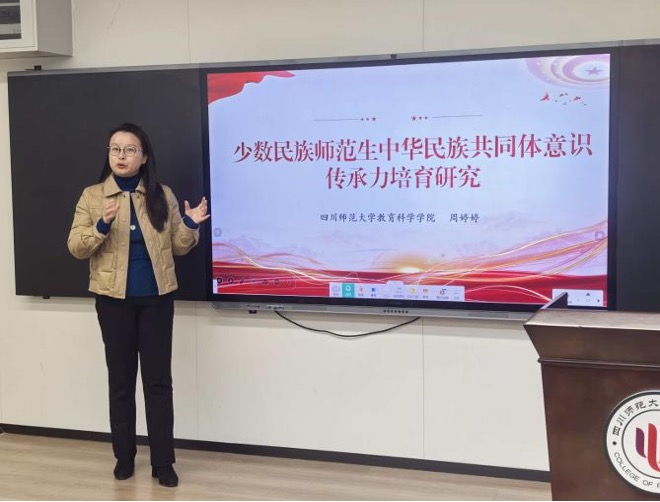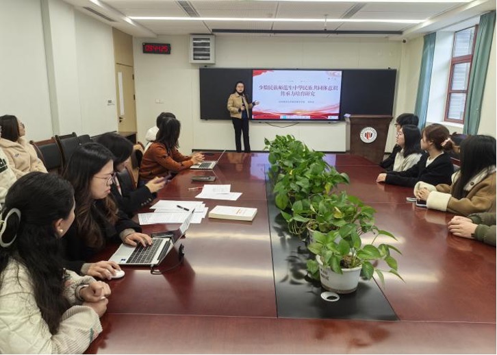 11月21日,教育部思政专项“少数民族师范生中华民族共同体意识传承力培育研究”研究成果分享会在学院221会议室举行。分享会由课题主持人周婷婷主讲,学院党支部成员、部分教师及学生代表参与交流。