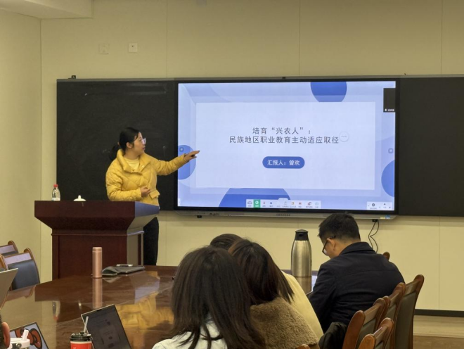 12月5日上午,由四川省高等学校人文社会科学重点研究基地中华民族共同体教育研究中心与我院民族地区教育高质量发展研究团队联合主办的第七期中华民族共同体教育学术沙龙在学院307会议室成功举行。本期沙龙以“培育‘兴农人’:民族地区职业教育主动适应取径”为主题,由我院教师曾欢主讲,特邀《人大复印报刊资料·职业技术教育》责任编辑毕乐担任与谈人。学院师生代表共同参与了本次研讨。